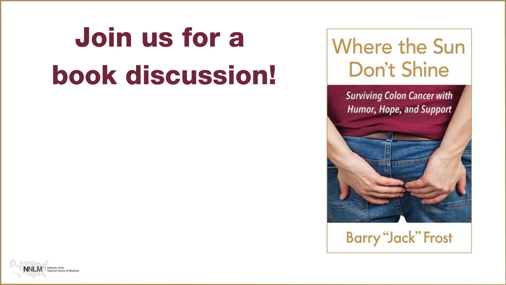 Terms of use: Network of the National Library of Medicine (NNLM) staff offer these health discussion resources for educational use. The materials included do not necessarily reflect the views or opinions of the author, publisher, or the sponsoring agencies of the National Library of Medicine (NLM) and the National Institutes of Health (NIH).